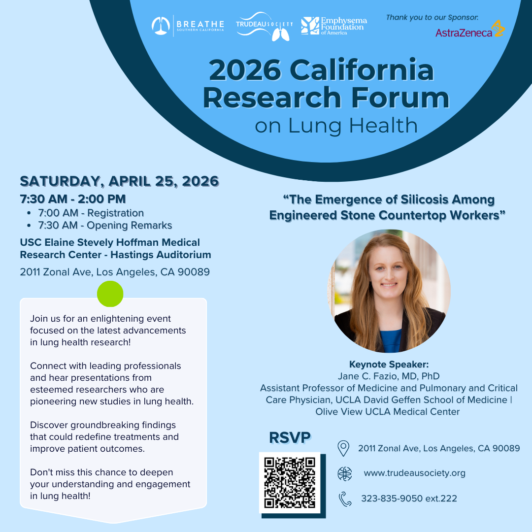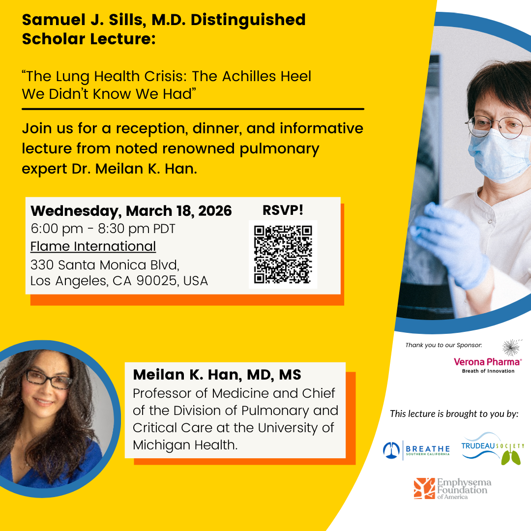 In collaboration with Breathe Southern California and the Emphysema Foundation of America, The Society sponsors annual lectures where researchers in pulmonary diseases and treatments presents their latest study findings and offer continuing education to community-based medical professionals.